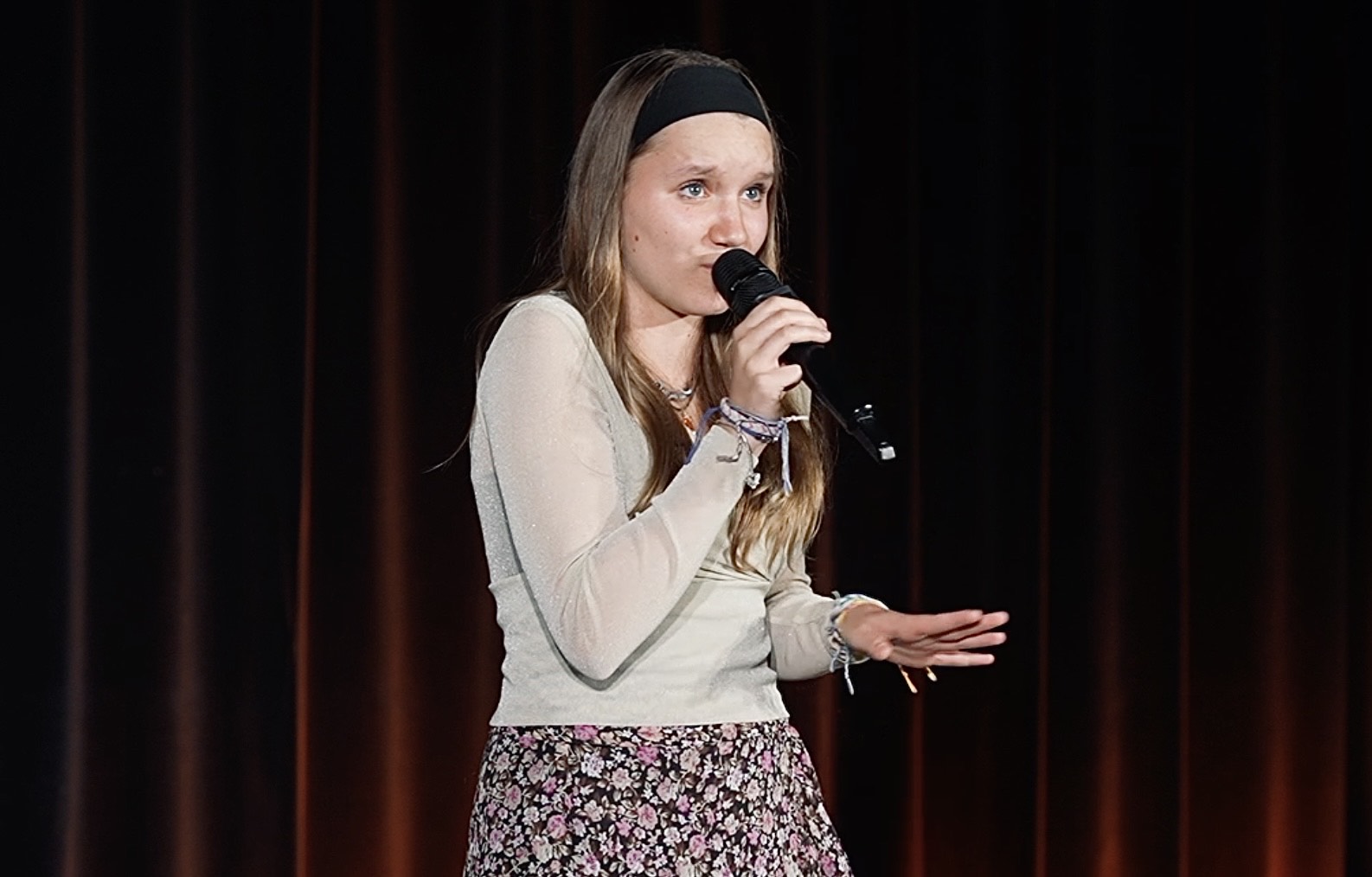 Praca z mikrofonem, nauka radzenia sobie ze stresem, budowanie pewności siebie.