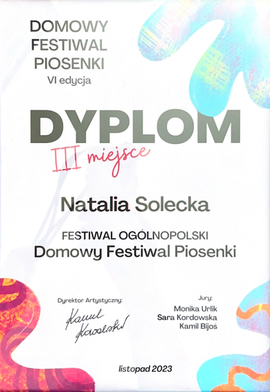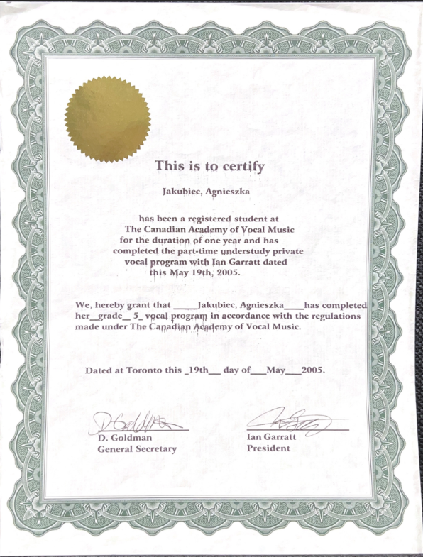 Jestem wokalistką, kompozytorką i certyfikowanym trenerem śpiewu oraz rehabilitacji głosu. Moja muzyczna podróż rozpoczęła się już w szkole podstawowej i trwa nieprzerwanie do dziś, prowadząc mnie przez świat pełen dźvięków, melodii i pasji.